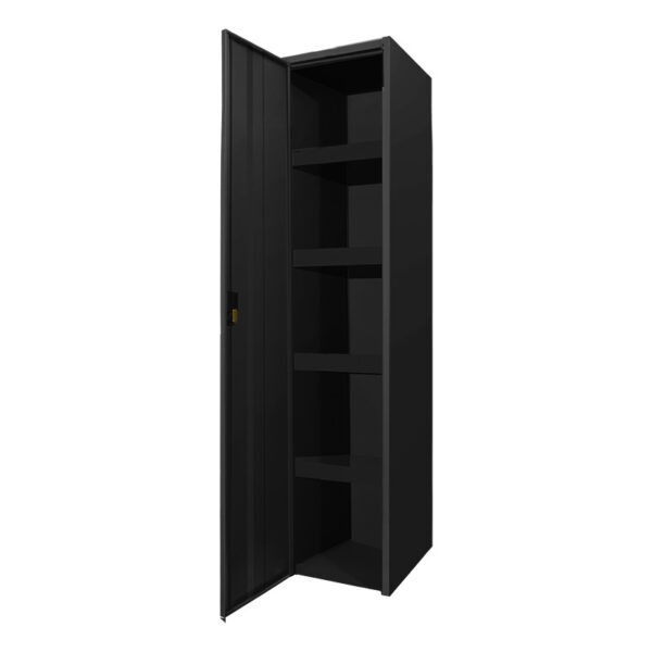 El cuerpo y la puerta son ensamblados mediante soldadura por resistencia. Cuenta con 5 entrepaños fijos reforzados para mayor resistencia en cada división. La puerta es abatible, se abre y cierra por medio de tres bisagras, la puerta cuenta con 2 refuerzos verticales.