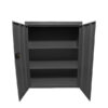 El cuerpo y las puertas son ensamblados mediante soldadura por resistencia. Cuenta con entrepaños fijos reforzados para mayor resistencia en cada división. Dos puertas abatibles, las puertas de los gabinetes se abren y cierran por medio de tres bisagras, cada puerta cuenta con 2 refuerzos verticales. Una puerta lleva su cerradura empotrada fabricada en plásticos ABS tipo paleta, incluye dos llaves y su estiradera.