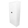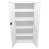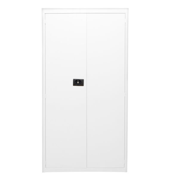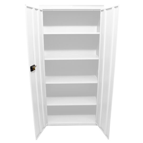 El cuerpo y las puertas son ensamblados mediante soldadura por resistencia. Cuenta con entrepaños fijos reforzados para mayor resistencia en cada división. Dos puertas abatibles, las puertas de los gabinetes se abren y cierran por medio de tres bisagras, cada puerta cuenta con 2 refuerzos verticales. Una puerta lleva su cerradura empotrada fabricada en plásticos ABS tipo paleta, incluye dos llaves y su estiradera.