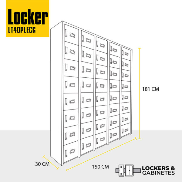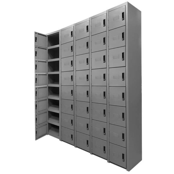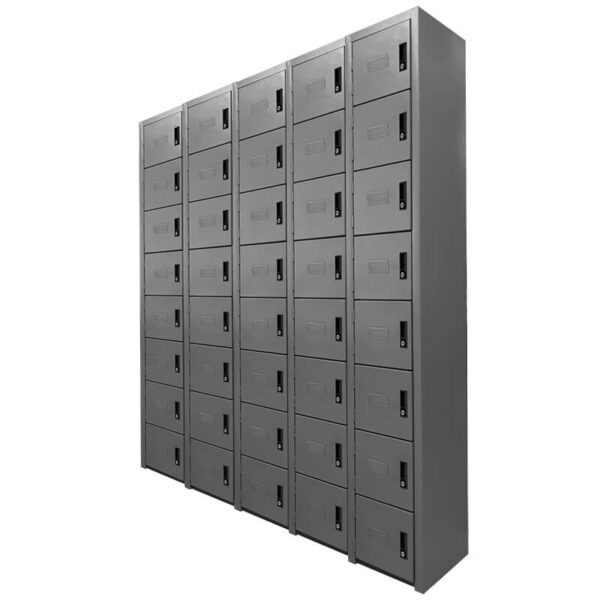 • Fabricado en Acero de primera calidad rolado en frió, configuración de 5 Torres de 8 casilleros cada una.