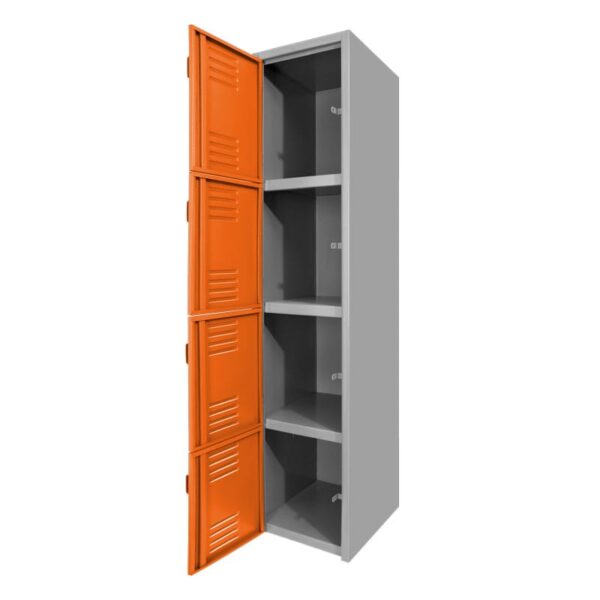 El cuerpo y las puertas son ensambladas mediante soldadura por resistencia. Las puertas se abren y cierran por medio de 2 bisagras tipo libro. Cada puerta cuenta con 2 rejillas de ventilación, estiradera y portacandado.